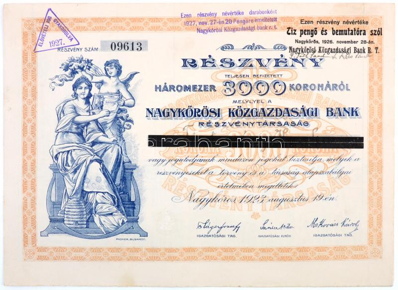 Nagykőrös 1923. "Nagykőrösi Közgazdasági Bank Részvénytársaság" részvé... https://www.darabanth.com/hu/231-Gyorsarveres/231.0/Numizmatika/Reszvenyek-es-sorsjegyek~400005/Nagykoros-1923-Nagykorosi-Kozgazdasagi-Bank-Reszvenytarsasag-reszvenye-3000K-rol-sz~II1041243