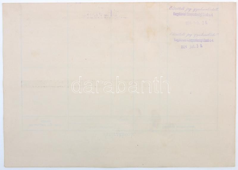Leírás: Nagykőrös 1923. "Nagykőrösi Közgazdasági Bank Részvénytársaság" részvénye 3000K-ról, szelvényekkel, bélyegzéssel és szárazpecséttel T:I-