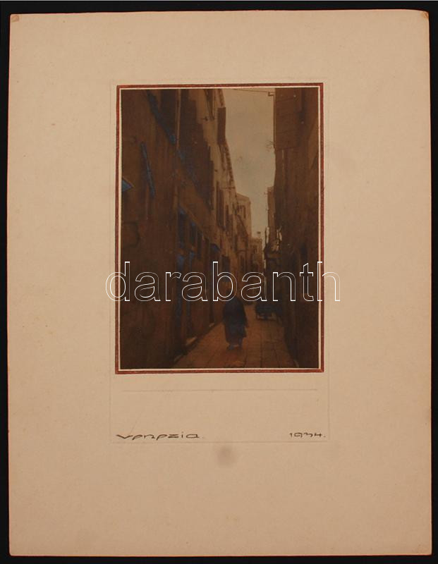 Leírás: 1934 Thöresz Dezső (1902-1963): Velence, színezett vintage fotóművészeti alkotás a szerző hagyatékából, jelzetlen, 17x11 cm, karton 33x24 cm