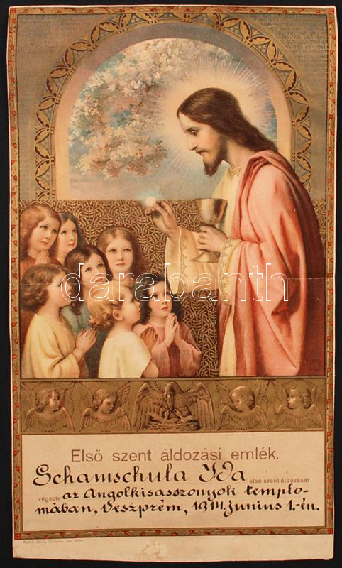 1914 Veszprém, "Első szent áldozási emlék" névre szóló emléklap az ang... https://www.darabanth.com/hu/232-Gyorsarveres/232.0/Festmeny-mutargy-papirregiseg-egyeb/Nyomtatvanyok~400010/1914-Veszprem-Elso-szent-aldozasi-emlek-nevre-szolo-emleklap-az-angolkisasszonyok-templo~II1045443