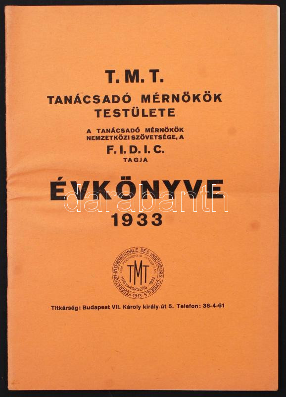 Leírás: 1933 T.M.T. Tanácsadó Mérnökök Testülete, A Tanácsadó Mérnökök Nemzeti Szövetsége, a F.I.D.I.C. tagja évkönyve