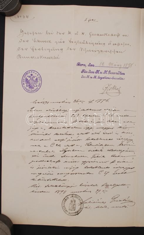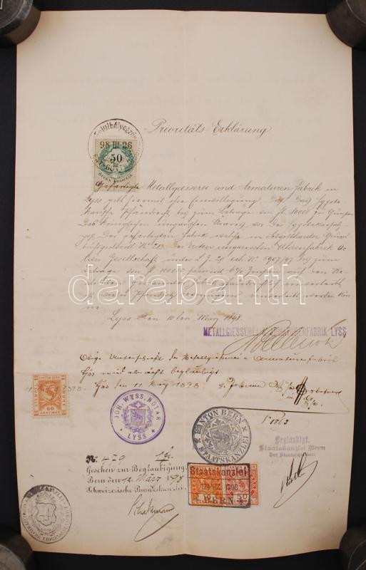 Leírás: 1898 Okmány magyar és svájci okmánybélyegekkel