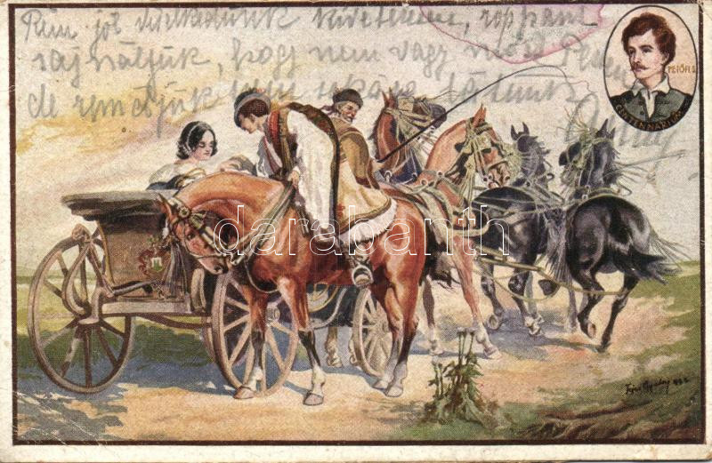 Petőfi Centenárium; Pusztai találkozás - betyár lovag, magyar folklór,... https://www.darabanth.com/hu/232-Gyorsarveres/232.0/Kepeslapok/Hires-Ember~600358/Petofi-Centenarium-Pusztai-talalkozas--betyar-lovag-magyar-folklor-vers-a-hatoldalon-Hu~II1051210