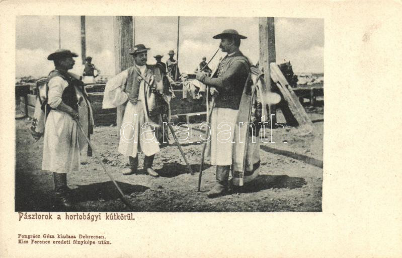 Hortobágy, Pásztorok a kút körül, kiadja Pongrácz Géza https://www.darabanth.com/hu/232-Gyorsarveres/232.0/Kepeslapok/Magyarorszag~200005/Hortobagy-Pasztorok-a-kut-korul-kiadja-Pongracz-Geza~II949745