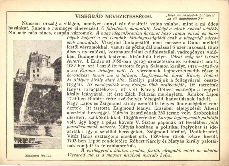 Leírás: Visegrád nevezetességei, kiadja Farkasfalvi Kornél