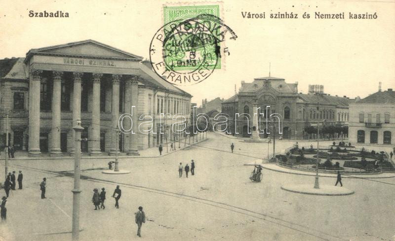 Szabadka, Városi színház, Nemzeti kaszinó / theatre, casino https://www.darabanth.com/hu/232-Gyorsarveres/232.0/Kepeslapok/Vajdasag~200010/Szabadka-Varosi-szinhaz-Nemzeti-kaszino-theatre-casino~II953860