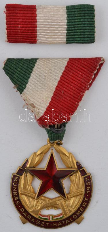 1957. "Munkás-Paraszt Hatalomért Emlékérem" aranyozott, zománcozott Br... https://www.darabanth.com/hu/232-Gyorsarveres/232.0/Numizmatika/Falerisztika-Kituntetesek-jelvenyek~16/1957-Munkas-Paraszt-Hatalomert-Emlekerem-aranyozott-zomancozott-Br-kituntetes-mellszalago~II1049798