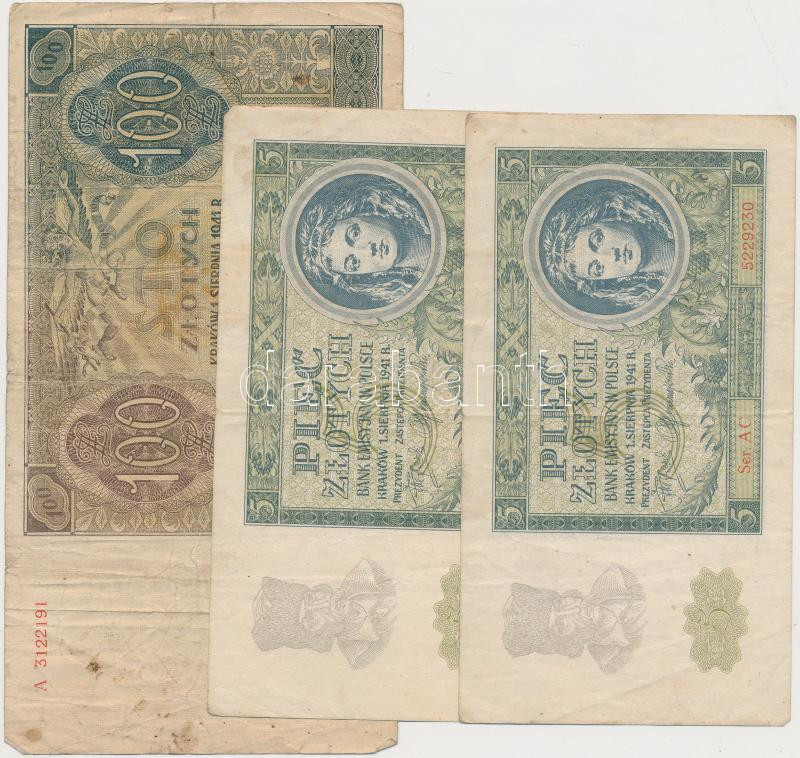 Lengyelország / Német megszállás 1941. 5Zl (2x) egymáshoz közeli sorszám + 100Zl T:III,III-