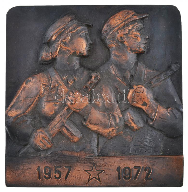 1972. "1957-1972 (15 éves a Munkásőrség)" bronzozott műanyag plakett, ... https://www.darabanth.com/hu/232-Gyorsarveres/232.0/Numizmatika/Magyar-emlekveretek~9/1972-1957-1972-15-eves-a-Munkasorseg-bronzozott-muanyag-plakett-hatoldalan-akasztoval-~II1045134