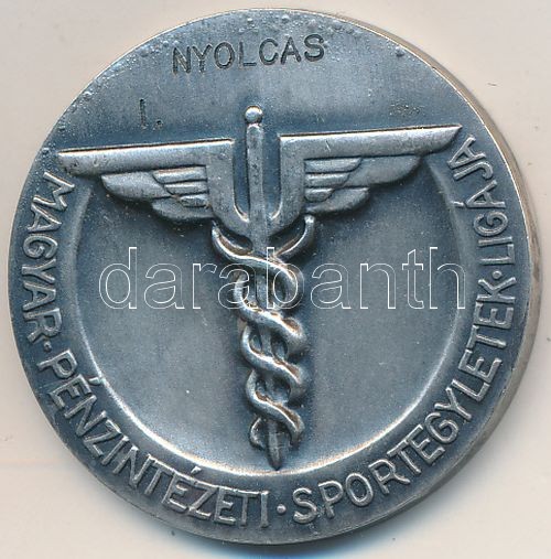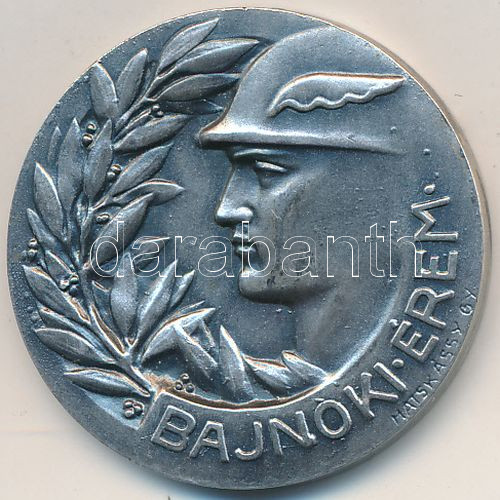 Leírás: Matskássy Gyula (1912-1971) ~1943. "Bajnoki Érem / Magyar Pénzintézeti Sportegyletek Ligája" ezüstözött fém díjérem (40mm) T:2-