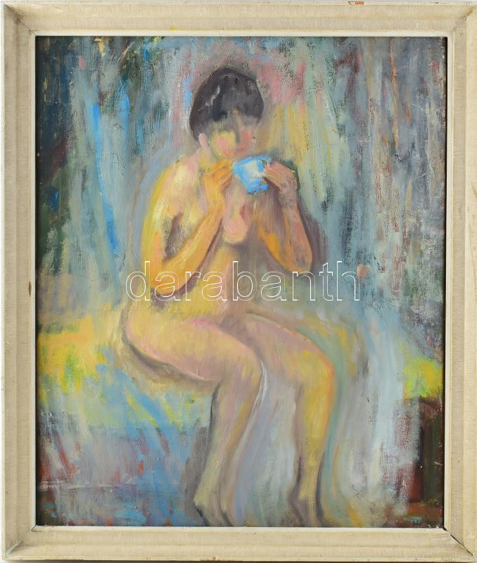 Leírás: Tallós Ilona (1918-1991): Ülő női akt. Olaj, vászon, faroston, jelzés nélkül. Katalógusszám nélkül. 60x50 cm. Keretben.