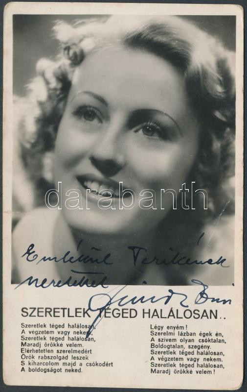 Leírás: Simor Erzsi (1913-1977) színésznő aláírása őt ábrázoló fotólapon