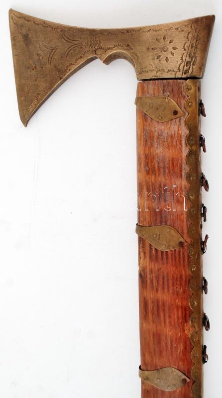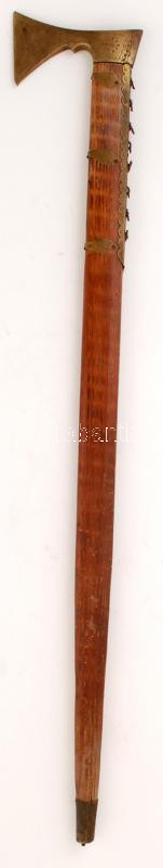 Leírás: Régi fokos réz fejjel és díszítéssel, 80cm