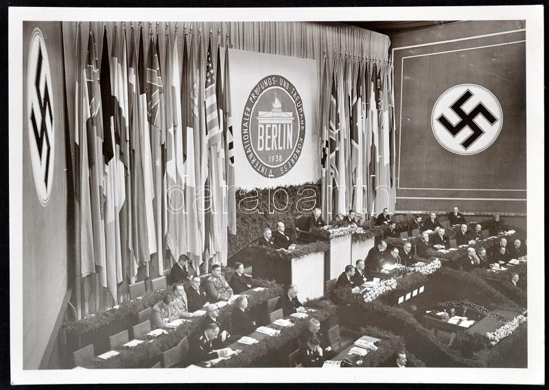 1938 Berlin, Az V. Internationaler Prüfungs- und Treuhand-Kongress megnyitó ülése, beszédet mond Hans Frank igazságügyi miniszter, Welt-Photo-Bericht, hátoldalon feliratozva, pecséttel jelzett, 17x12 cm /
