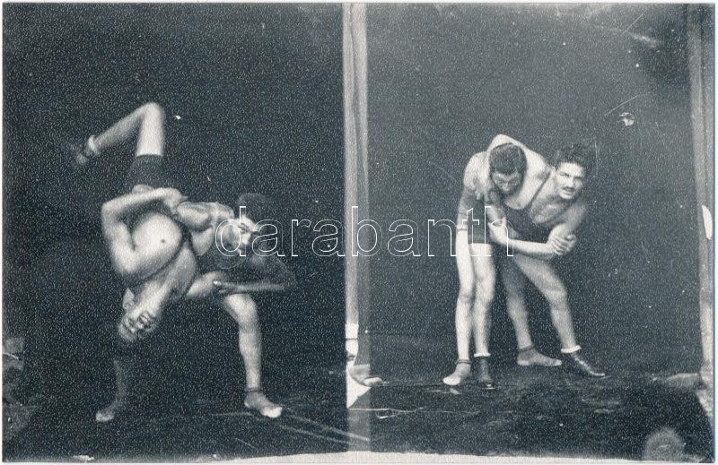 Leírás: cca 1940 Hajdú János csongrádi fényképész felvétele birkózókról, vintage negatívról készült későbbi másolat a szerző hagyatékából, 9x14 cm
