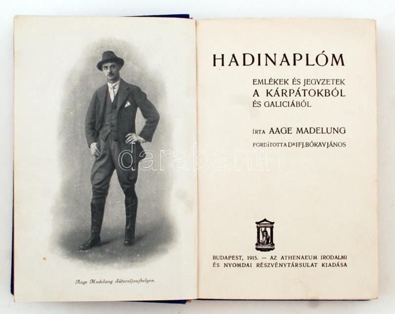 Madelung Aage: Hadinaplóm. Emlékek és jegyzetek a Kárpátokból és Galic... https://www.darabanth.com/hu/233-Gyorsarveres/233.0/Festmeny-mutargy-papirregiseg-egyeb/Konyvek-Militaria-katonasag~400031/Madelung-Aage-Hadinaplom-Emlekek-es-jegyzetek-a-Karpatokbol-es-Galiciabol-Budapest-1915~II1060454