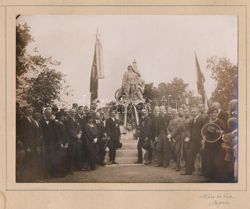 Leírás: cca 1925 Mezőtárkány, katonai hősi emlékmű koszorúzási ünnepsége, Kiss és Fia egri fényképészek riportfotója, 15x20 cm, karton 20x24 cm