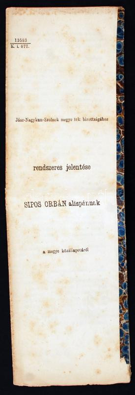 Leírás: 1877 Szolnok vármegye alispánja, Sipos Orbán jelentése a megye közállapotáról 8p.