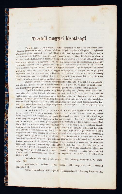1877 Szolnok vármegye alispánja, Sipos Orbán jelentése a megye közálla... https://www.darabanth.com/hu/233-Gyorsarveres/233.0/Festmeny-mutargy-papirregiseg-egyeb/Nyomtatvanyok~400042/1877-Szolnok-varmegye-alispanja-Sipos-Orban-jelentese-a-megye-kozallapotarol-8p~II1057604