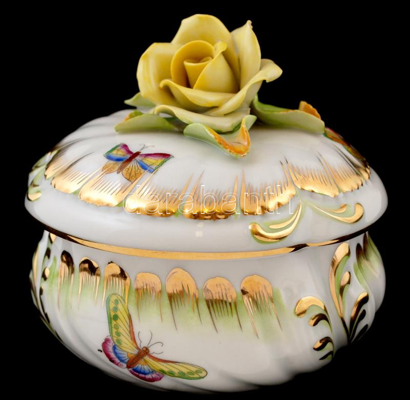 Herendi Viktória mintás bonbonier, kézzel festett, jelzett, hibátlan, ... https://www.darabanth.com/hu/233-Gyorsarveres/233.0/Festmeny-mutargy-papirregiseg-egyeb/Porcelan~400006/Herendi-Viktoria-mintas-bonbonier-kezzel-festett-jelzett-hibatlan-m11-cm-d12-cm~II1060895