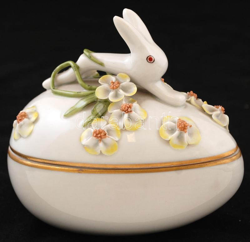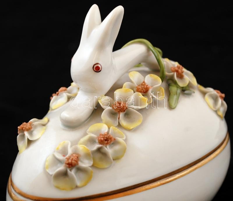 Leírás: Herendi nyulas bonbonier, apró lepattanások a virágon, jelzett, kézzel festett, 10×11 cm