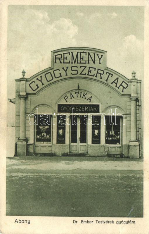 Abony, Dr. Ember Testvérek 'Remény' gyógyszertára https://www.darabanth.com/hu/233-Gyorsarveres/233.0/Kepeslapok/Magyarorszag~5/Abony-Dr-Ember-Testverek-Remeny-gyogyszertara~II1060523