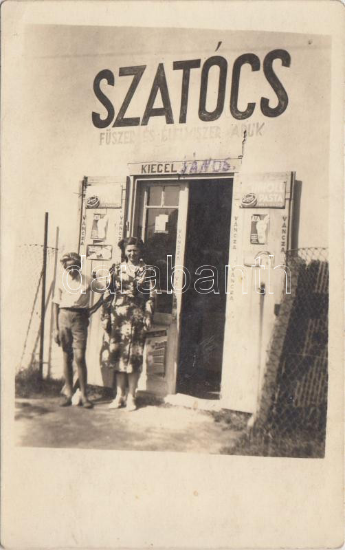 Leírás: Azonosítatlan magyar város a negyvenes években, Kiegel János szatócsüzlete, photo