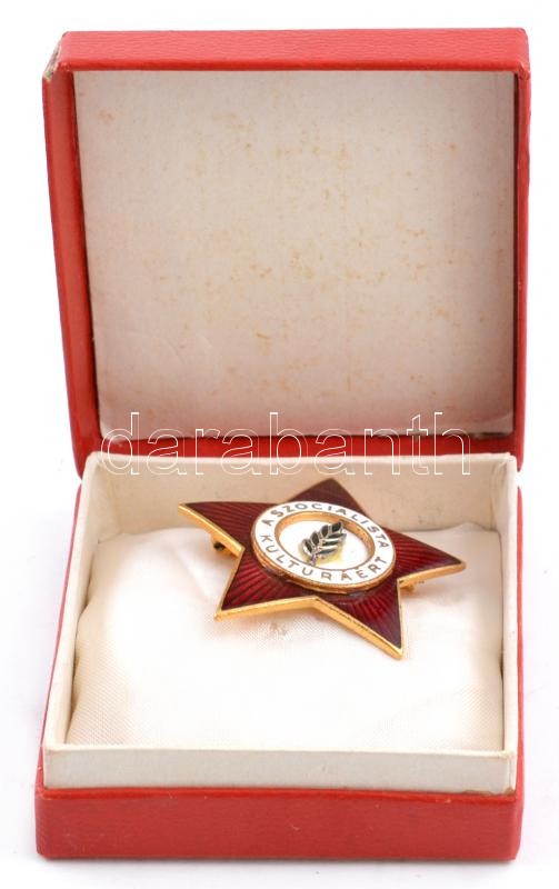 Leírás: ~1970. "A Szocialista Kultúráért" aranyozott, zománcozott kitüntetés nem eredeti tokban T:2