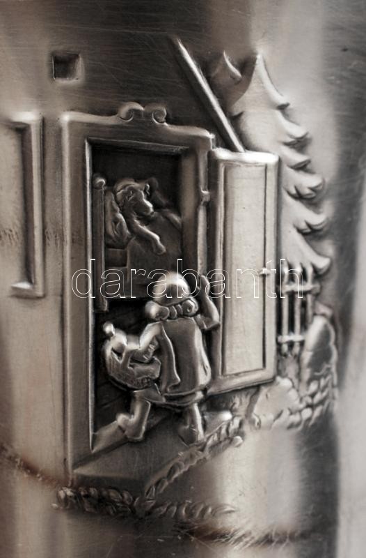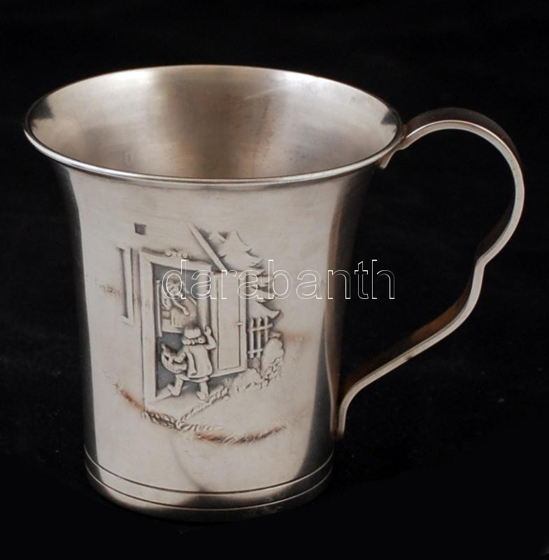Leírás: Gero, ezüstözött, mesejelenetes, füles, gyermekpohár, jelzett, m:7cm