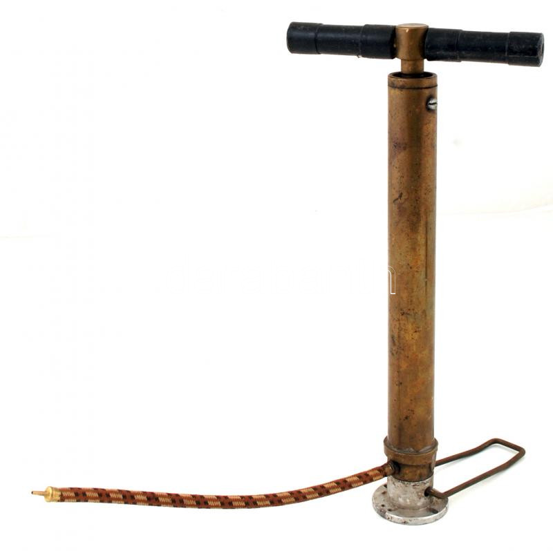Leírás: Régi, réz, kerékpár pumpa új tömlővel