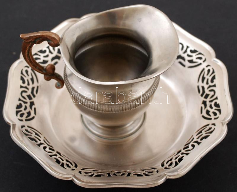 Leírás: Vegyes alpakka tárgyak, jelzettek: ezüstözött kis tálka, kiöntő, 2db