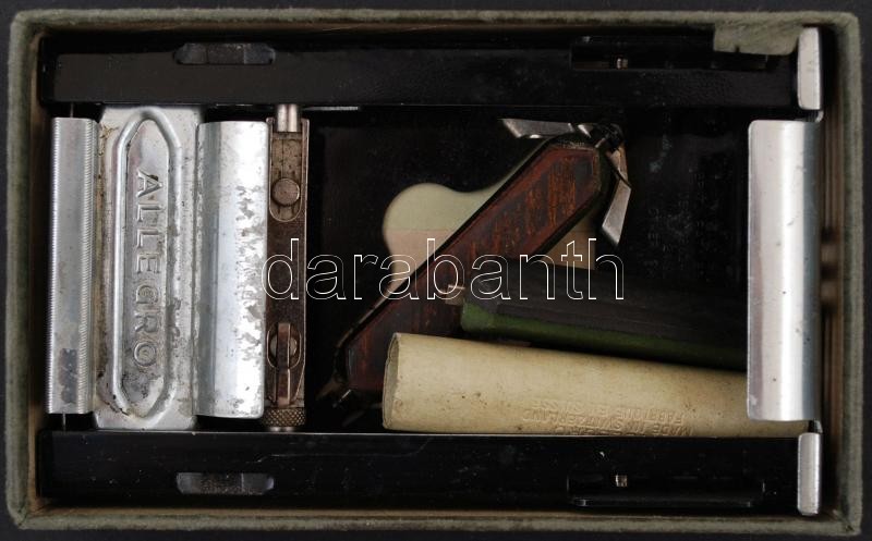 Leírás: cca 1940 svájci Allegro Mod. L. penge élező készlet eredeti dobozban, leírással
