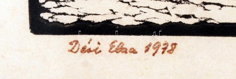 Leírás: Déri Elza: Vár, Tárnok utca. Linó, papír, jelzett, üvegezett keretben, 17×24 cm