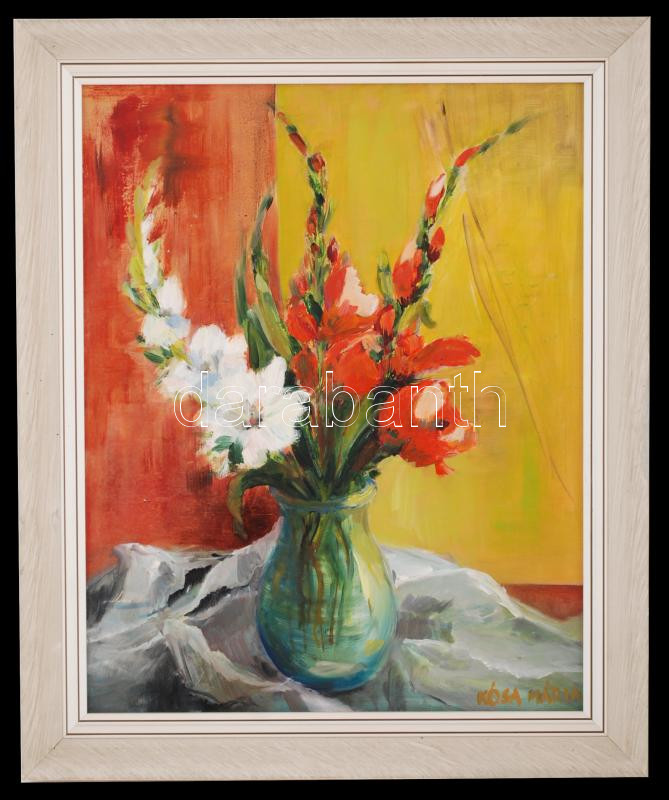 Eszesné Kósa Mária: Virágcsendélet. Olaj, farost, jelzett, keretben, 5... https://www.darabanth.com/hu/234-Gyorsarveres/234.0/Festmeny-mutargy-papirregiseg-egyeb/Festmenyek-es-grafikak~40121/Eszesne-Kosa-Maria-Viragcsendelet-Olaj-farost-jelzett-keretben-50C39740-cm~II1066487