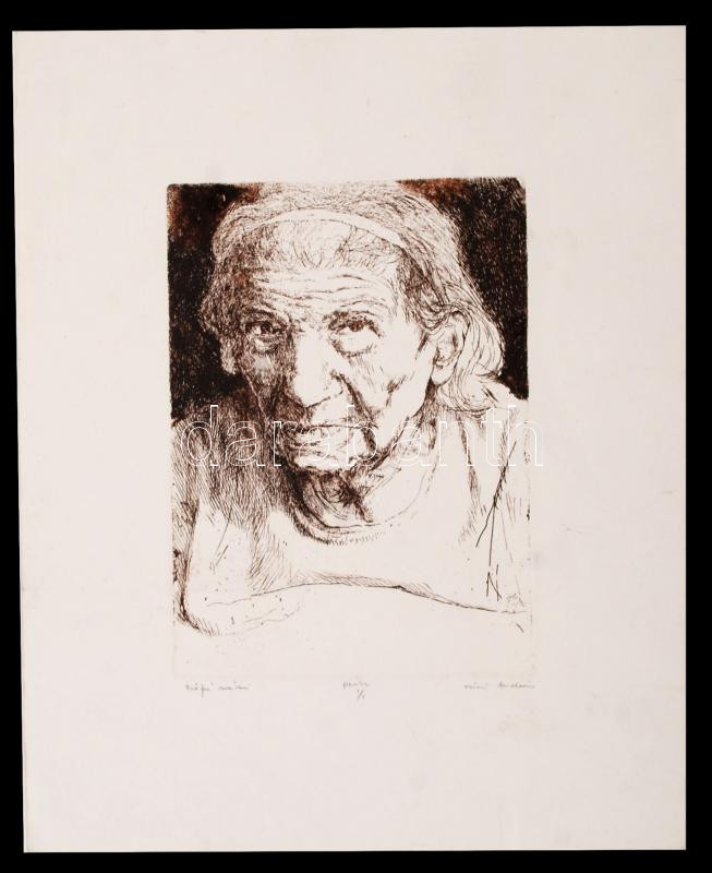 Váci András (1926- ): Zsófi néni, rézkarc, papír, jelzett, 19×14 cm https://www.darabanth.com/hu/234-Gyorsarveres/234.0/Festmeny-mutargy-papirregiseg-egyeb/Festmenyek-es-grafikak~40121/Vaci-Andras-1926--Zsofi-neni-rezkarc-papir-jelzett-19C39714-cm~II1070654