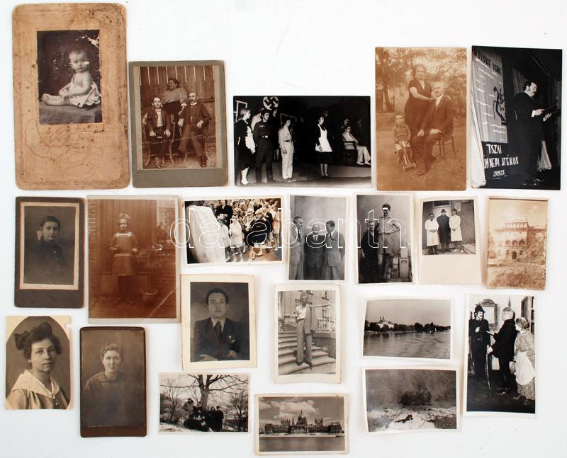 cca 1905-1980 Nagy fotó tétel: több, mint 180 darab, nagyrészt családi fotó, érdekes témában (a család részben kivándorolt, részben itthon maradt), köztük keményhátúak is + negatívok, kisméretű előhívott képek