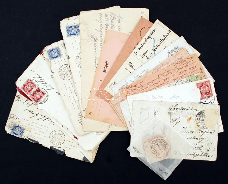 Leírás: 1915-1918 I. világháborús tábori küldemények, hadifoglyok levelei, kivágások