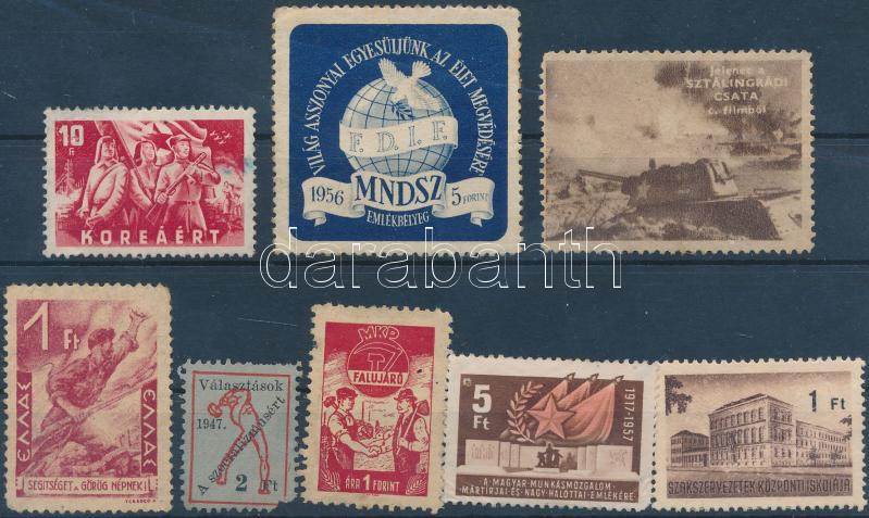 Leírás: 8 db különböző propaganda és segélybélyeg(MNDSZ, Koreáért, MKP falujáró stb.)