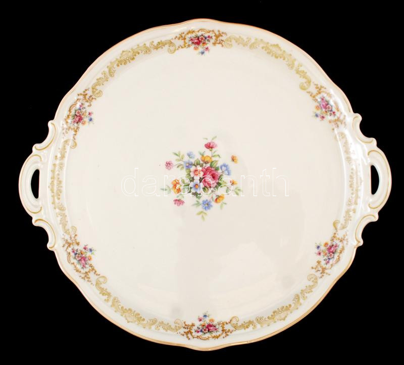 Leírás: Hutschenreuther német virágmintás porcelán kínáló, matricás, hibátlan, jelzett, 28cm