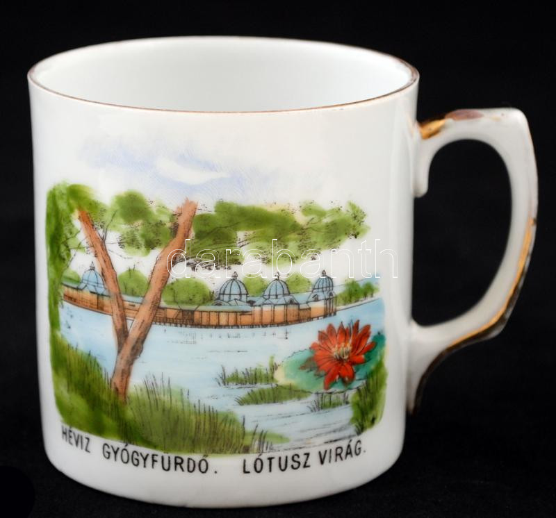 Leírás: Victoria china Héviz Gyógyfürdő, Lótusz virág porcelán bögre, matricás, hibátlan, m:7cm