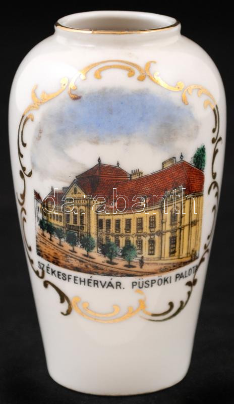 Leírás: Zsolnai Székesfehérvár , Püspöki palota kis váza, matricás, hibátlan, jelzett, m:10cm