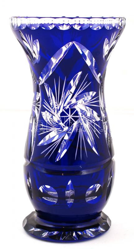 Leírás: Kobalt kék olomkristály váza, csiszolt, metszett, apró csorbával, m:22 cm