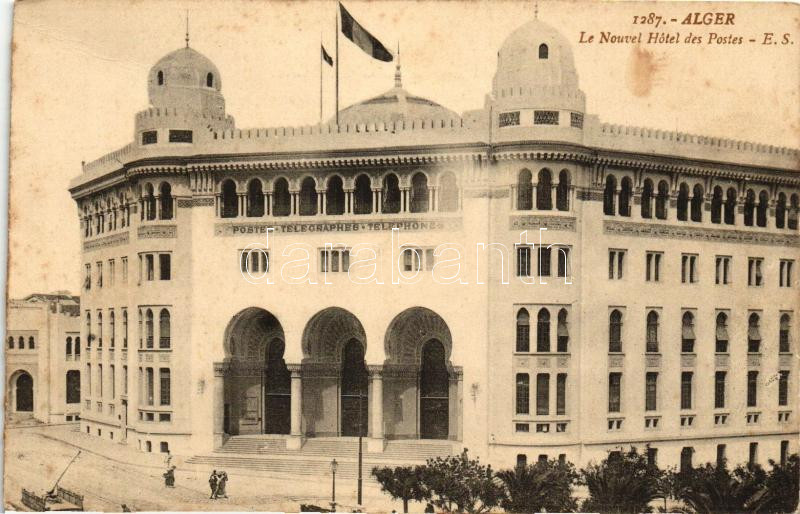 Algiers, Alger; Le Nouvel Hotel des Postes (cut) https://www.darabanth.com/hu/234-Gyorsarveres/234.0/Kepeslapok/Algeria~40045/Algiers-Alger-Le-Nouvel-Hotel-des-Postes-cut~II1069300