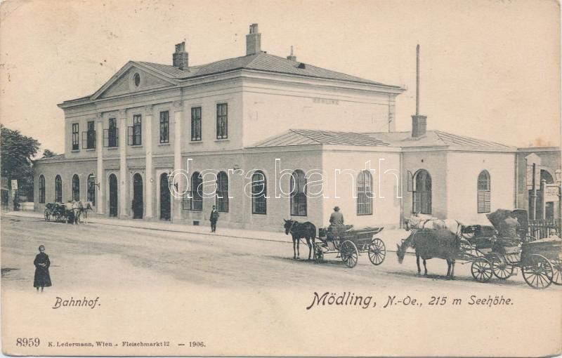 Mödling, Bahnhof / railway station (wet corner) https://www.darabanth.com/hu/234-Gyorsarveres/234.0/Kepeslapok/Ausztria~40048/Modling-Bahnhof-railway-station-wet-corner~II1065614