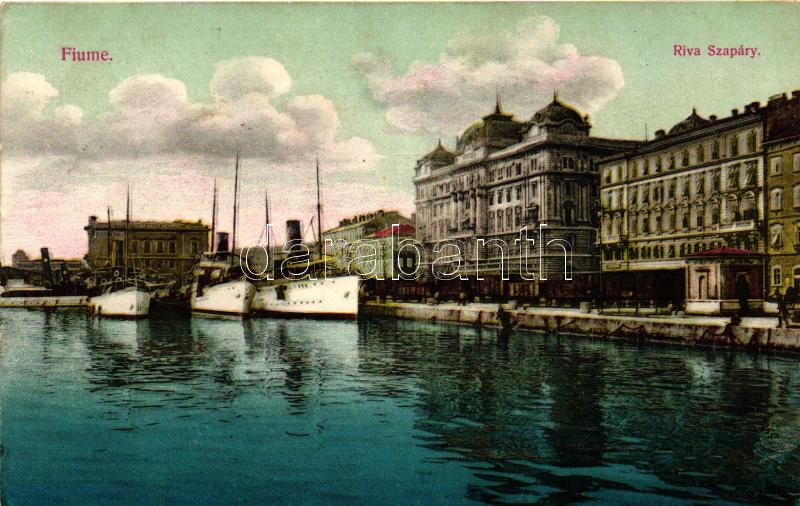 Fiume, Riva Szapáry / port, steamship, Divald https://www.darabanth.com/hu/234-Gyorsarveres/234.0/Kepeslapok/Horvatorszag-Delvidek~9/Fiume-Riva-Szapary-port-steamship-Divald~II1064963