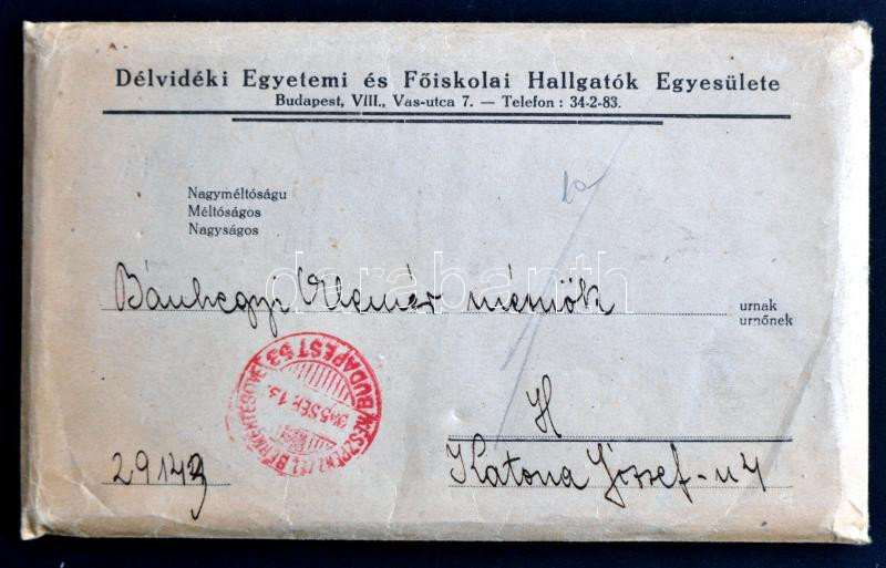 1920 Délvidék, Bánát-Bácska-Baranya nem lehet másé! Nem, nem, soha! 20 lapból álló képeslap füzet, kiadja a Délvidéki Egyetemi és Főiskolai Hallgatók Egyesülete, postai borítékban / 'Southern Land' irredenta, postcard booklet with 20 cards