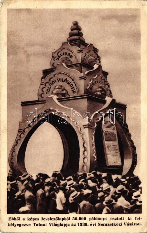 1936 Budapest, Nemzetközi Vásár, Tolnai Világlapja (EK) https://www.darabanth.com/hu/234-Gyorsarveres/234.0/Kepeslapok/Magyarorszag~5/1936-Budapest-Nemzetkozi-Vasar-Tolnai-Vilaglapja-EK~II1067379