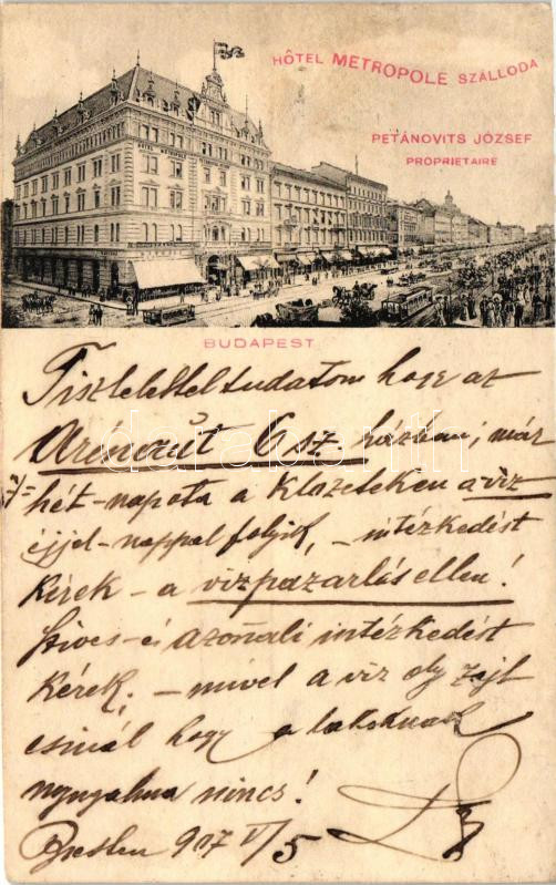 Leírás: Budapest VII. Hotel Metropole szálloda, Petánovics József proprietaire (r)