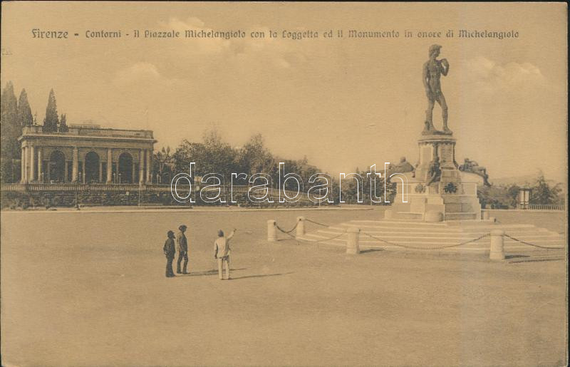 Leírás: Firenze, Piazzale Michelangiolo con la Loggetta ed il Monumento in onore di Michelangiolo / square, statue