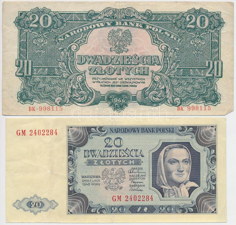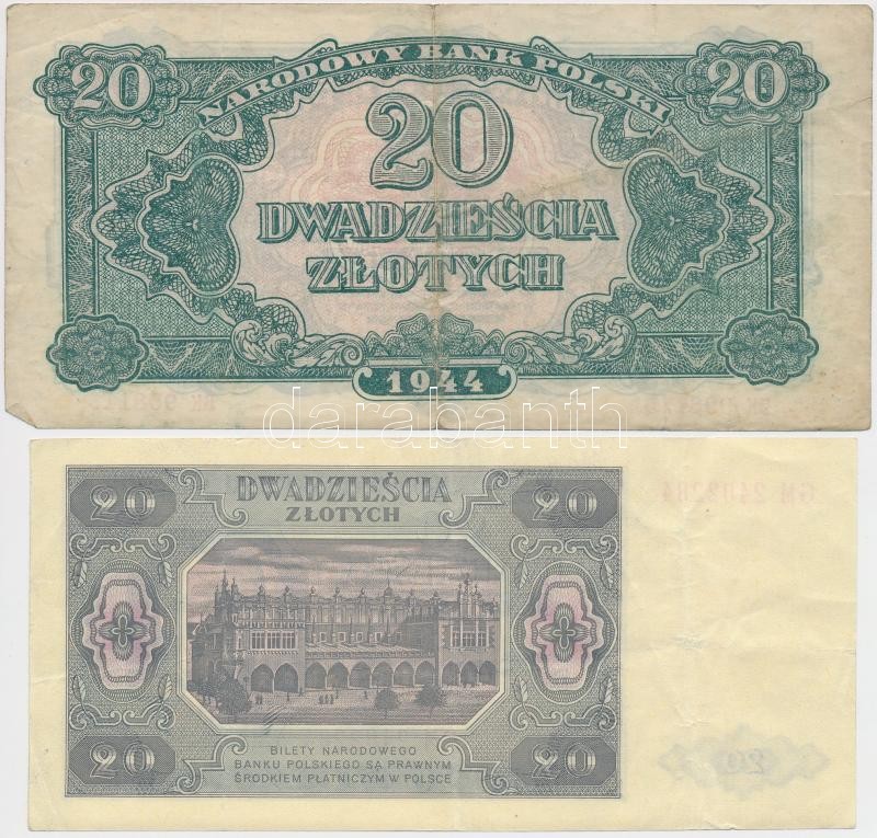 Lengyelország/II.V.H. után Lengyel Nemzeti Felszabadítási Bizottság 1944. 20Zl + 1948. 20Zl T:III